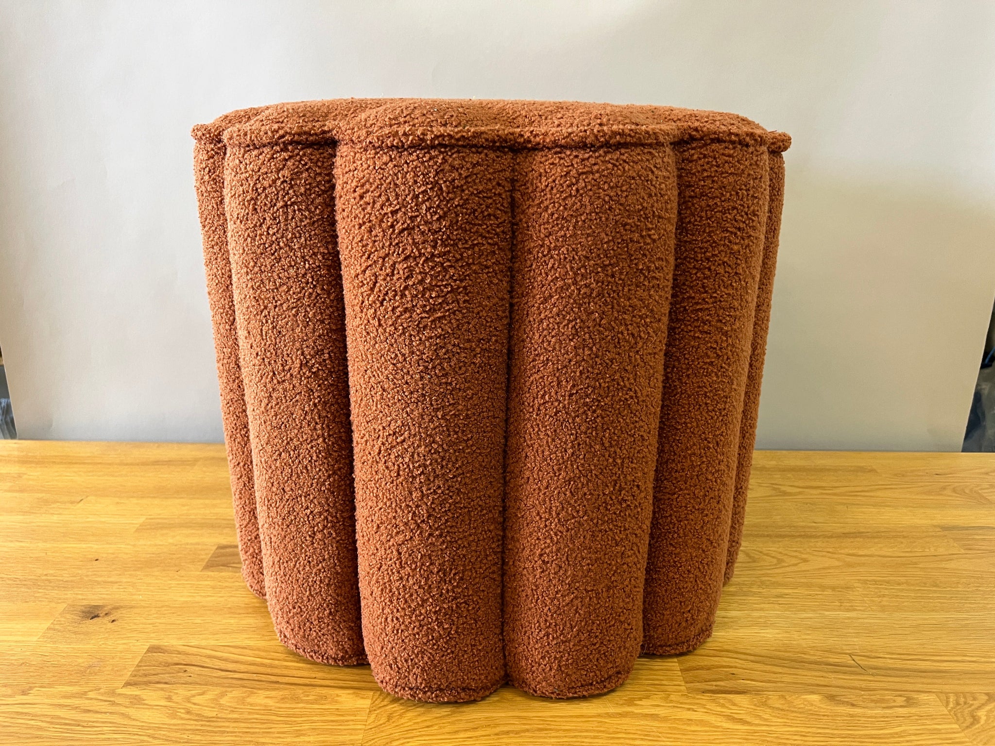 Orange cloud/wavy ottoman. Height 16.5", Diameter 19"